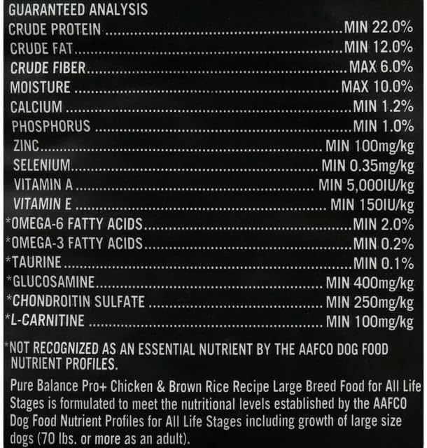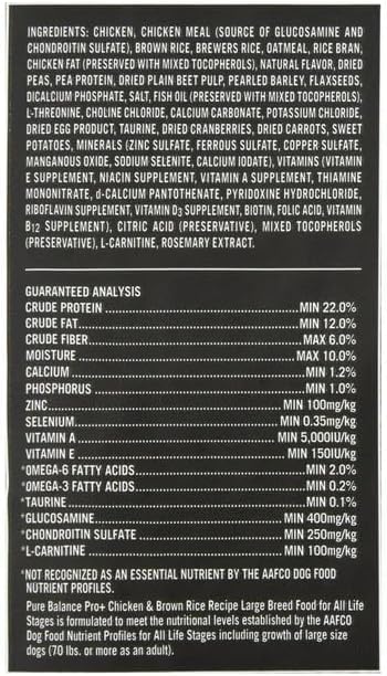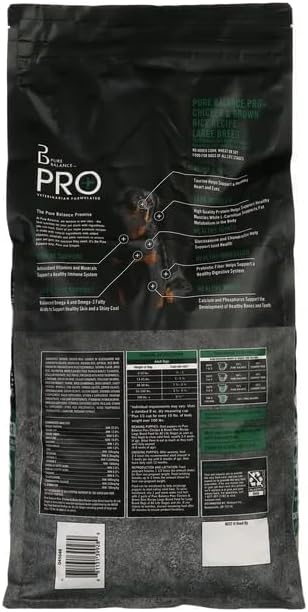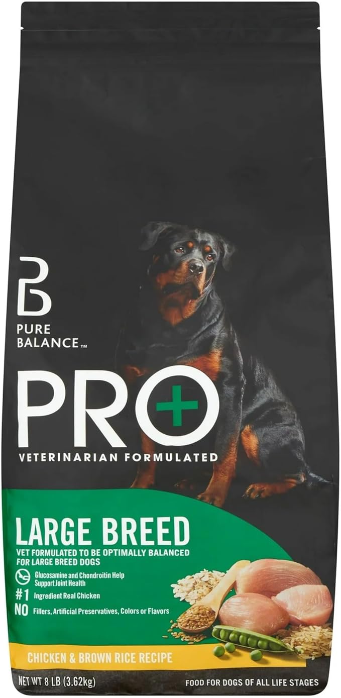 Pure Balance Pro+ Large Breed Chicken & Brown Rice Recipe Dry Dog Food is vet formulated with real chicken to be optimally balanced for large breed dogs. With no fillers or artificial preservatives, colors, or flavors, it's an ideal part of a dog's diet.